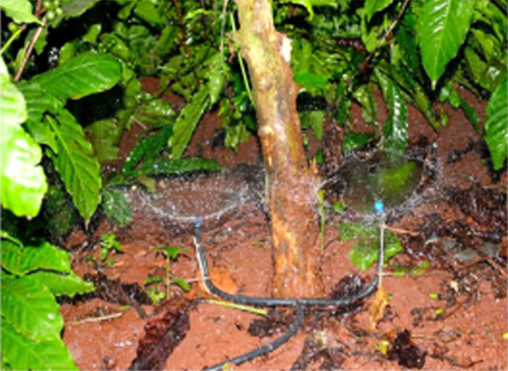 最合適的咖啡樹灌溉的以微噴灌為最佳,灌溉的同時也能實現小環境的 調節。