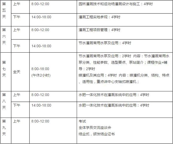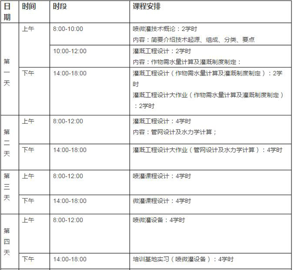 第二十八期灌溉工程師培訓班共安排了64學時(1學時為1小時),課程安排請見附件二。