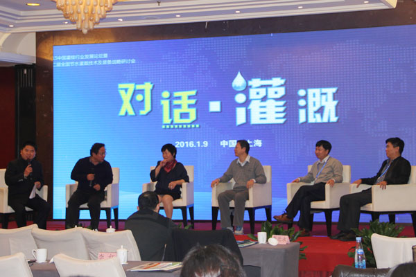 武漢大學羅金耀教授的《關于我國小型農田水利工程建設若干問題的思考及有關微灌新技術研究進展》的報告,就我國大型灌區建設、小型農田水利與規模化節水建設進行了闡述,提出要充分利用各地已有的灌溉試驗站加大對作物需水量的觀測研究,更好地實現穩產高產。 中國農業大學李光永教授分析了《微灌: 現狀需求與挑戰》。李光永教授表示,微灌產品目前依然面臨創新灌水器結構、改進制造技術、提升過濾效率和開發自動化、信息化系統等眾多挑戰。 華南農業大學張承林教授作了《國內外水肥一體化技術的發展現狀》的主題報告。張教授表示,水肥一體化技術主要適用于經濟果樹和設施農業,主張使用水溶性肥料、注肥泵等提高施肥效率,并指出肥料企業應根據不同地區、作物的需肥特性,迎合市場的需求,攜手灌溉企業制定合理的施肥方案,幫助用戶真正實現作物提質增產。 北京美林地景董事長周榮、上海華維節水灌溉股份有限公司董事長呂名禮、北京湖人灌溉副總經理呂露、新疆惠利灌溉門旗博士、大禹節水董事長王棟,分別就《機械化噴灌技術與應用》、《中國灌溉品牌自主化之路》、《灌溉自動化控制設備種類及應用》、《地下滴灌技術應用與進展》和《地埋式滴灌技術及其應用》作主題報告。 有別于眾多先進技術的分享,呂名禮董事長從一個灌溉人的角度,同大家一起回首了灰色的“洋”貨歲月,分析了國內灌溉市場長期依賴進口的挨宰囧境,總結了當前困頓受囧的主觀癥結,倡導大家理性地看待國貨與進口產品,主張國內的灌溉企業打造優質自主品牌,努力踐行“好產品,中國造”,走出一條揚眉吐氣的國產化之路,重建國人對“中國制造”的信任。呂名禮認為企業可以沒有國界、但企業家是有國界的,購買國貨是一種具體的愛國行為。這一觸動且鼓舞人心的精彩報告時時獲得在場嘉賓雷鳴般的掌聲。 《對話·灌溉》主持人 上海華維董事長呂名禮(左一)