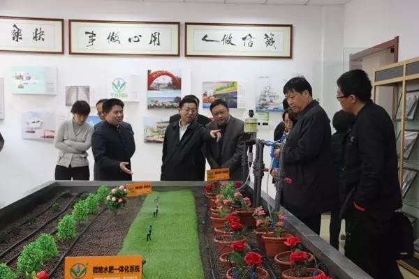 在參觀文化展廊時(shí),呂總為胡區(qū)長一行簡單講解了中國灌溉發(fā)展簡史。呂總介紹說,灌溉從幾千年前的大水漫灌發(fā)展到現(xiàn)在的高效水肥一體化灌溉以及農(nóng)業(yè)物聯(lián)網(wǎng)控制,已經(jīng)告別了靠天吃飯的窘境,可以隨時(shí)隨地對作物進(jìn)行灌溉施肥。