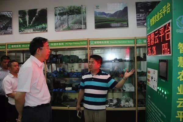 何沖龍書記詳細考察了華維實景模擬展示大廳、物聯網控制演示系統。在觀看了華維團隊精心策劃的高效水肥一體化專題片后,給予了高度評價,認為華維所從事的事業是一項有利于農民致富、有利于環境改善、有利于子孫后代的公益事業,表示“大開眼界、大有可為、大有合作空間”。