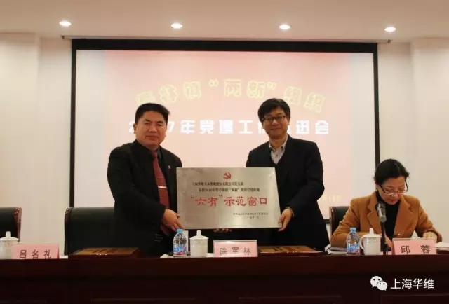 鎮黨委委員、綜合工作黨委副書記邱蓉主持會議,舉行了2017年黨建顧問授聘書儀式、2016年度“兩新”黨組織先進表彰儀式。上海華維節水灌溉股份有限公司黨支部榮獲2016年度亭林鎮“兩新”組織黨建陣地示范窗口獎,山林食品、亨井等6家企業黨支部獲頒創新示范獎,嘉麟杰紡織品、皓發電鍍等14家企業黨支部獲頒優秀組織獎。