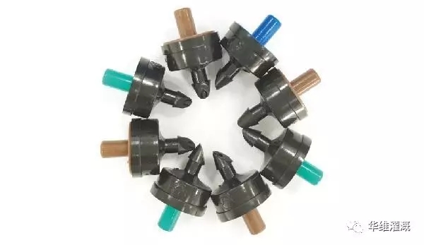 也可通過分配器與其它的灌水器(如滴箭)連接,用于分流,每個出水口的壓力和流量相同,保證均勻的灌溉效果。