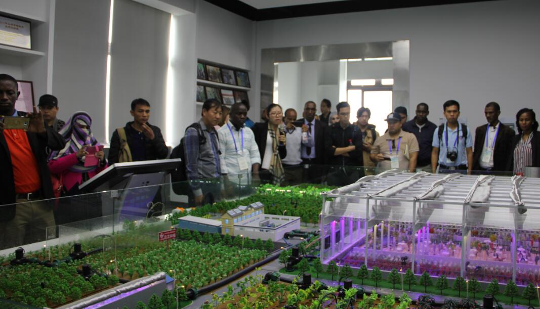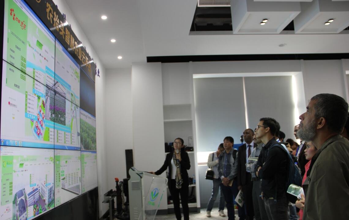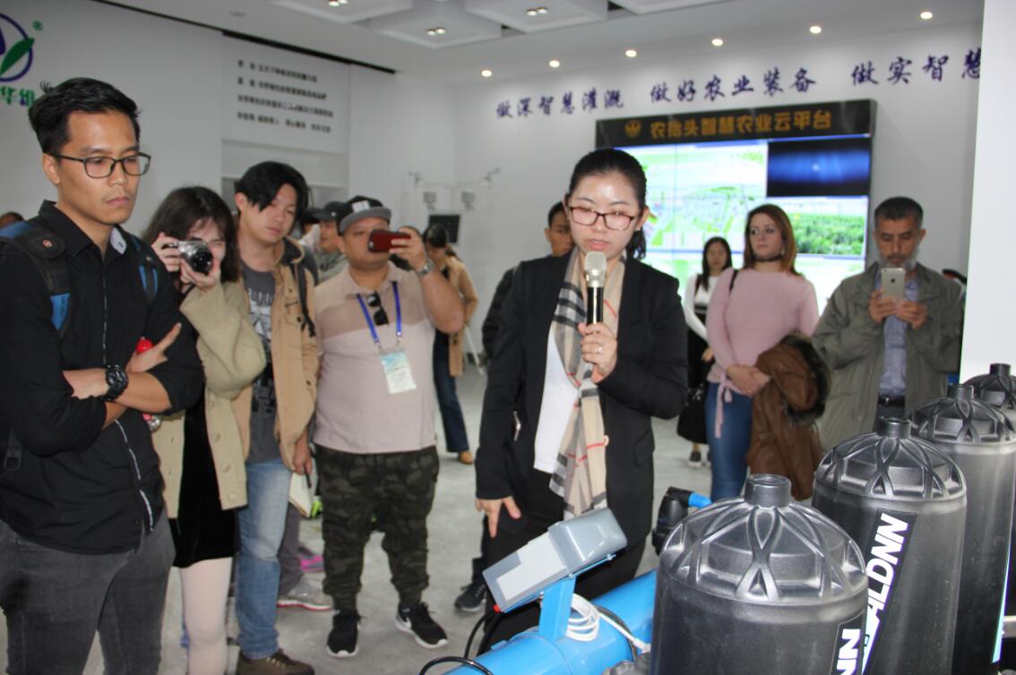 基于農抬頭智慧農業云平臺系統的華維智慧農場微縮模型,真實演示了智慧農業裝備所實現的“智慧灌溉、智慧施肥、智慧溫室氣候調控”等新功能和現代農業新技術;展示了綜合管控大田、溫室、山地等不同地形不同作物的高效水肥一體化灌溉系統,以及包括農業種植、休閑、科普、旅游觀光等田園綜合體形式的新型農業模式。高度設施化、自動化、智能化的智慧農業裝備吸引了國外友人的嘖嘖稱奇和頻頻點贊。