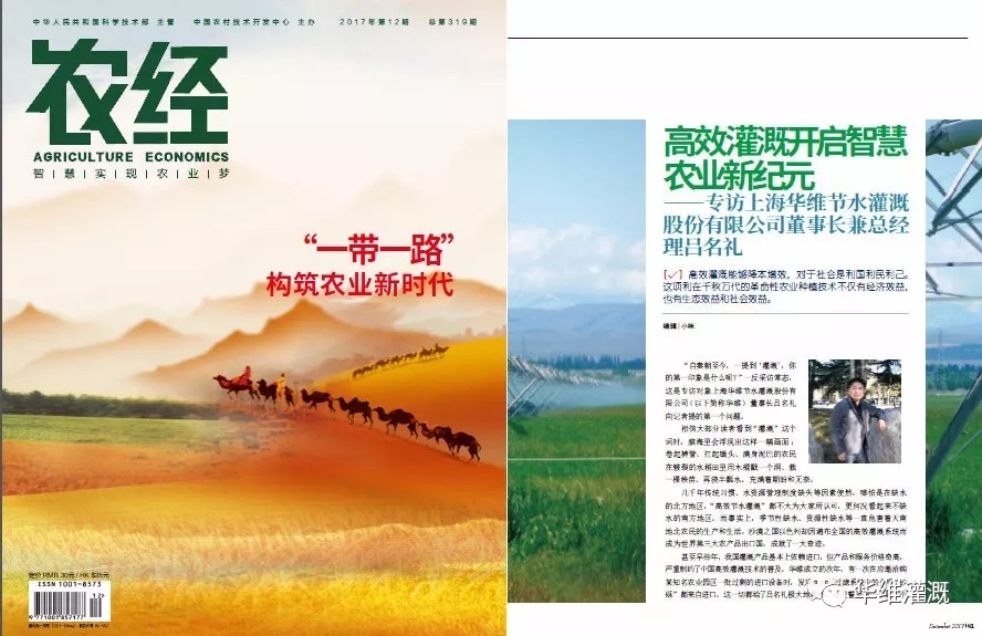 《農經》雜志,由中華人民共和國科技部主管,中國農村科技開發中心主辦。是一本定位于國內外農業產業領域的高端雜志,以解決中國農業重大問題為使命,是中國“大農業”產業領袖群體的必讀刊物。本篇專訪刊載于2017年第12期(總第319期),P81-84,撰稿記者:張瑩瑩。
