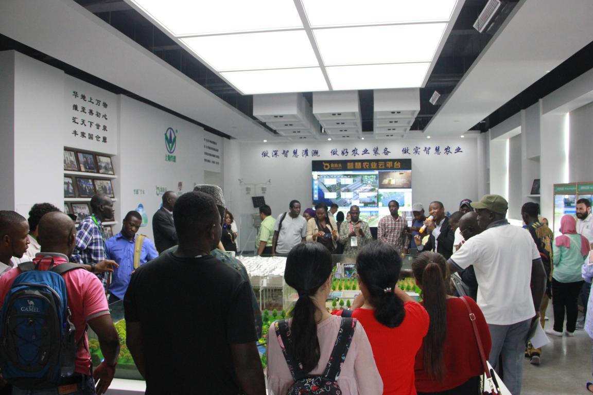 7月9日,上海華維節水灌溉有限公司迎來了一群熱情的海外“學生”,參觀和學習中國先進的農業技術和智慧裝備是他們此行的目的。在華維自建的中國第一家灌溉博物館中,不少學員在應用了水肥一體化的田園綜合體模擬沙盤及農抬頭智慧農業云平臺前駐足良久。在南蘇丹從事農業科技工作的小伙Reak不由發出了上述感慨。