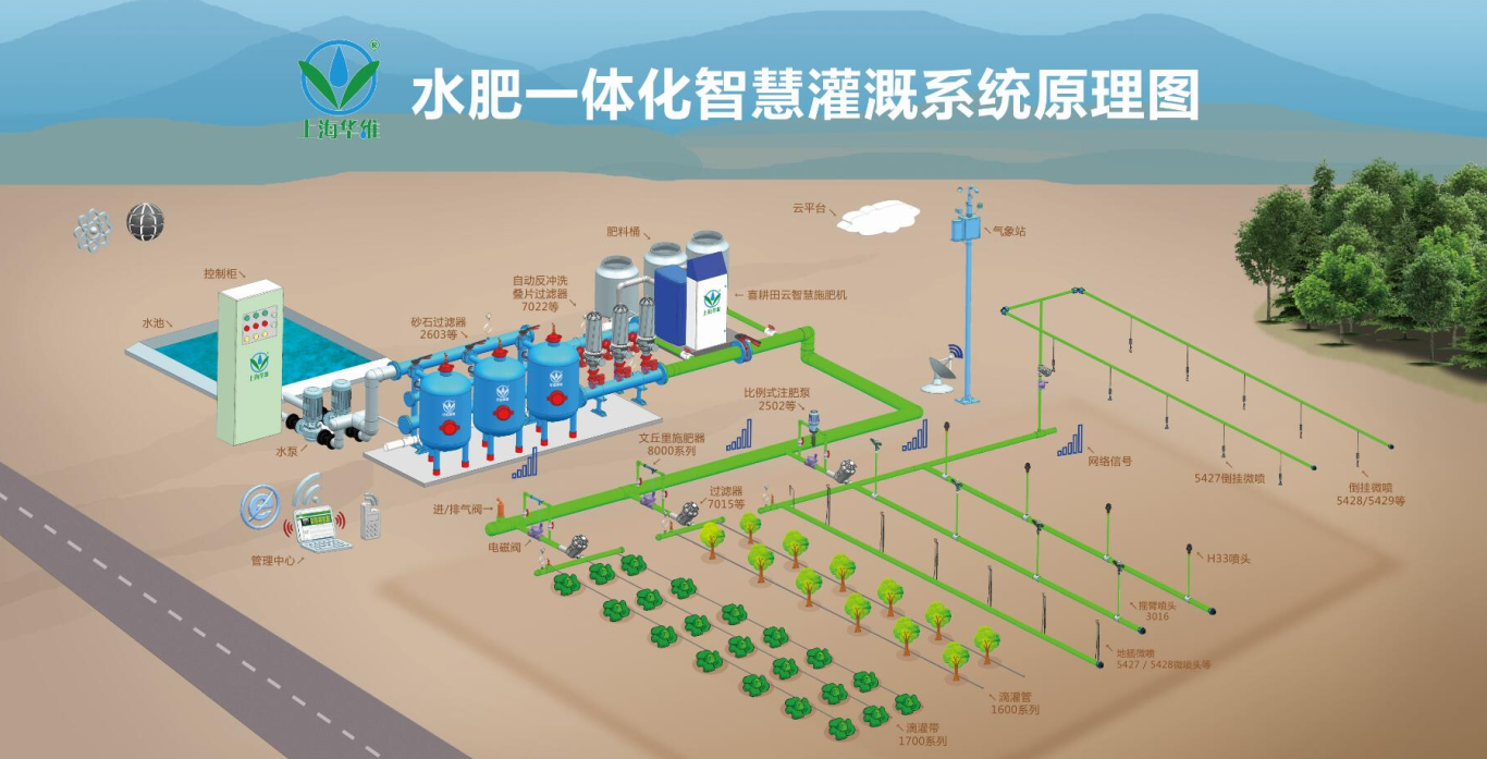 華維水肥一體化智慧灌溉系統根據作物生長特性、水肥需求規律等因素,按需分配水和肥,定時、定量將水肥同步準確施加。不論是“滴灌、微噴”,還是“噴灌”等形式,華維水肥一體化智慧灌溉系統“糾正”作物“暴飲暴食”的壞習慣,使作物“吃得舒服”,更加“吃得痛快”,呵護作物營養所需。