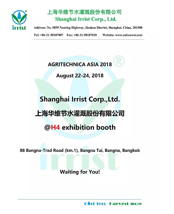 上海華維節水灌溉股份有限公司(SHANGHAI IRRIST CORP.,LTD.)攜系列化智慧農業裝備出席了本次展會。