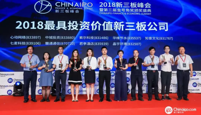 在此次峰會上,“第三屆金號角獎”隆重頒出十大新三板行業獎項。華維節水等9家企業榮獲“2018最具投資價值新三板公司”。