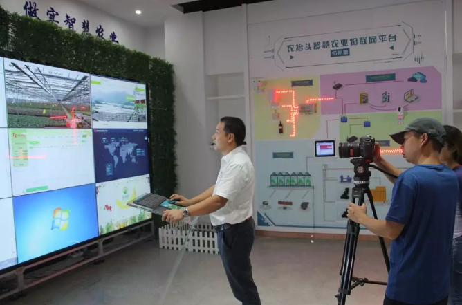 隨后,在中國灌溉博物館,華維工作人員為欄目組演示了農抬頭智慧農業物聯網平臺遠程操作系統。巨型顯示屏上,即時閃動著遠在千里外的廣西溫室內的光照、空氣溫濕度、土壤溫濕度等數據,按幾下電腦,灌溉、施肥、生產管理等諸多復雜環節可實現遠程操作,就像給溫室裝了一顆“智慧大腦”,讓農民從勞作者轉變為管理者,告別靠天吃飯,遠離面朝黃土背朝天,真正實現動動手指輕松賺大錢。