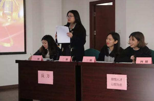 初賽首場辯論由國際貿(mào)易部及總裁辦組成正方辯論小組和財(cái)務(wù)中心反方辯論小組互為攻守,圍繞“理想人才以‘仁’或‘智’為主”展開了激烈交鋒。辯論過程中,各辯手步步為營,字字珠璣,旁征博引,國務(wù)貿(mào)易部搬出“納粹希德勒”,闡明“仁”的重要性;財(cái)務(wù)中心援引“農(nóng)夫與蛇”,講述“智”的不可或缺,雙方你來我往,互不相讓。