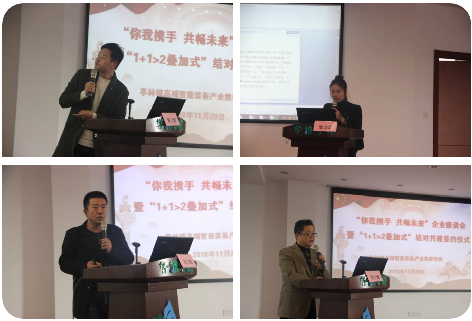 集群黨委成員以PPT形式,介紹了自己公司的主營(yíng)業(yè)務(wù)方向、生產(chǎn)制造需求以及發(fā)展過(guò)程中所遇到的問(wèn)題。
