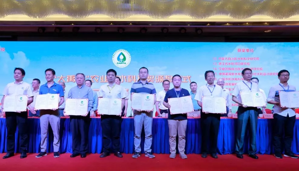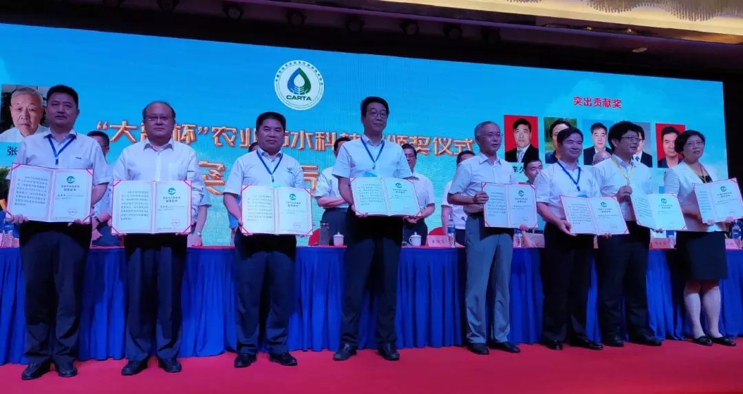 水利部牧區水利科學研究所、湖北省水利水電科學研究院、甘肅省水利科學研究院、華維集團(左)等榮獲農業節水科技獎二等獎