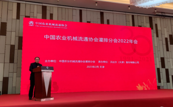 2023年2月18日,由中國農業機械流通協會灌排分會主辦,沃達爾承辦的灌排分會2022年會在天津成功舉辦,共有來自全國各地的近300位代表參加本次會議。中國農業機械流通協會會長范建華、副會長兼秘書長陳濤出席本次會議并講話。