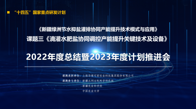 2023年2月1日上午,“十四五”國家重點研發計劃項目“新疆綠洲節水抑鹽灌排協同產能提升技術模式與應用(項目編號:2021YFD1900800)”課題三“滴灌水肥鹽協同調控產能提升關鍵技術及設備(課題編號:2021YFD1900803)”在上海組織召開2022年工作總結和2023年實施方案討論會。