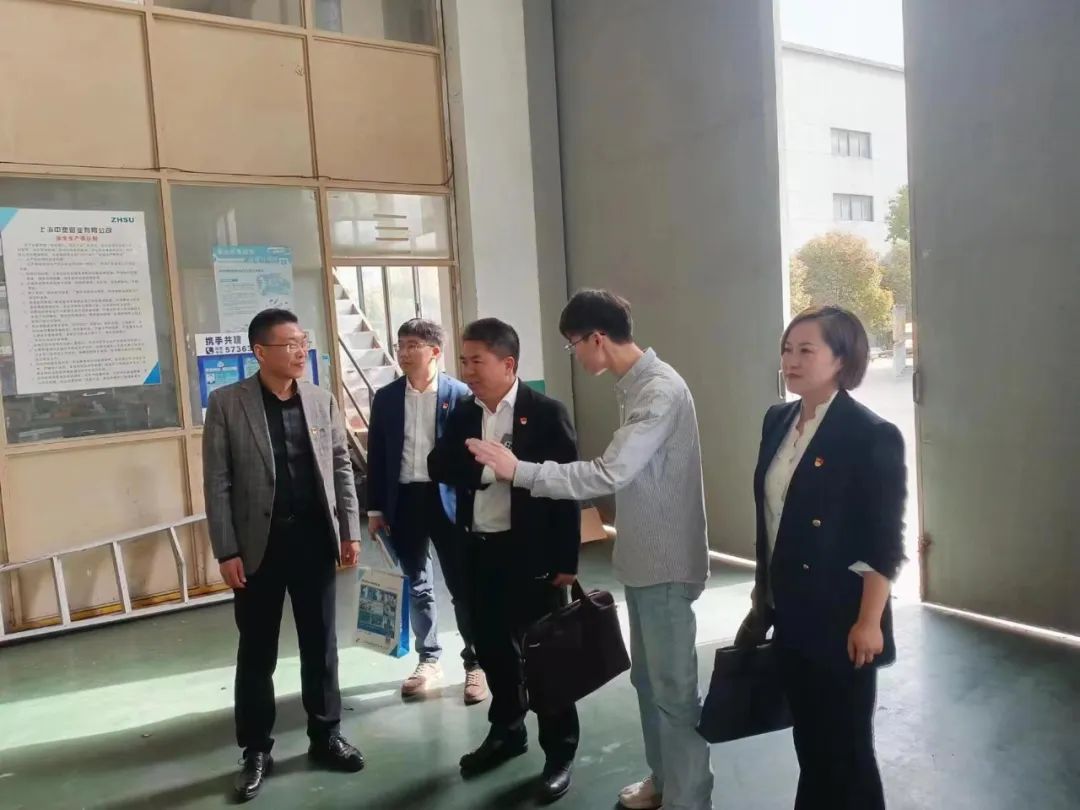 會(huì)后,呂名禮董事長(zhǎng)參觀(guān)中塑管業(yè)車(chē)間,和中塑管業(yè)總經(jīng)理黃錦樹(shù)、黨支部書(shū)記鄭亮亮探討合作意向。