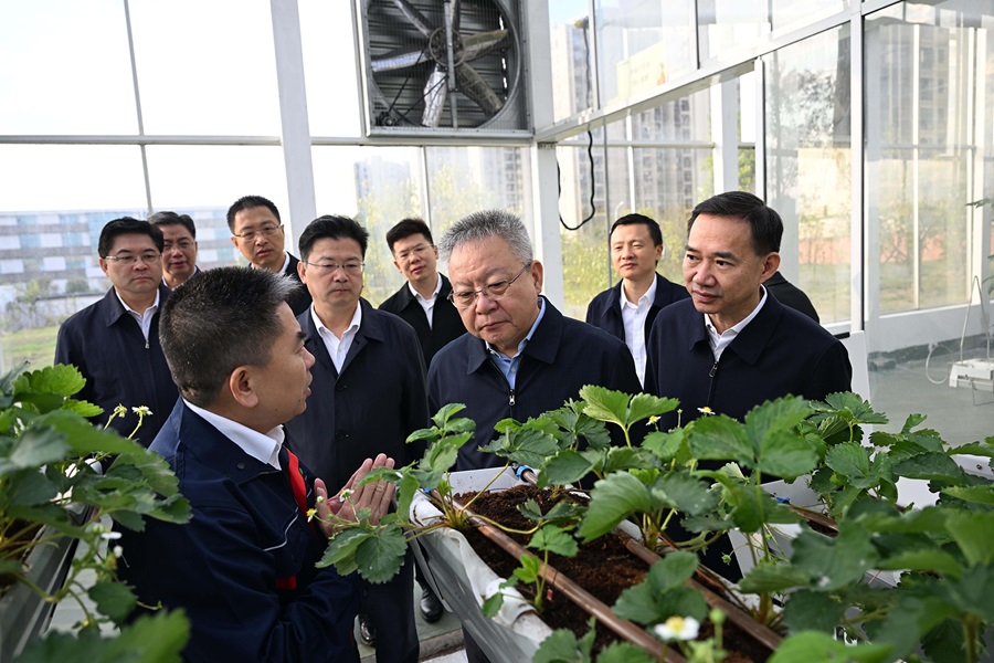 11月7日,沈曉明書記在華維節水科技裝備(湖南)有限公司了解企業發展、產品研發等情況。