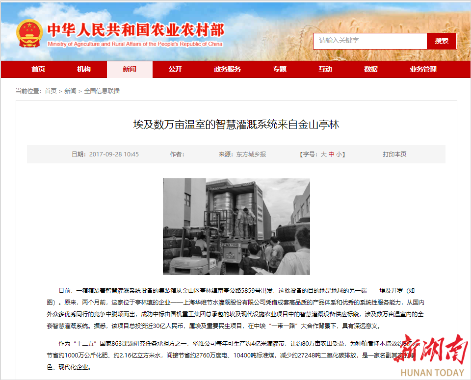 時至今日,華維科技也已經成為了“一帶一路”沿線國家農業水利官員高級研修班的實地教學基地,先后接待了幾十批(次)、近萬名國外農業水利官員和數十個國家權威媒體記者的參觀訪問。為此,上海市外事辦還專門給公司頒發了獎牌,用以勉勵公司在外事工作中做出的貢獻。