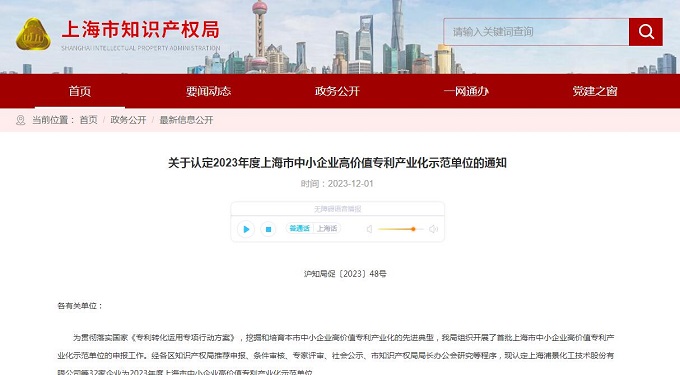 經(jīng)各區(qū)知識產(chǎn)權局推薦申報、條件審核、專家評審、社會公示、市知識產(chǎn)權局局長辦公會研究等程序,華維集團、浦景化工等32家企業(yè)被上海市知識產(chǎn)權局認定為2023年度上海市中小企業(yè)高價值專利產(chǎn)業(yè)化示范單位。