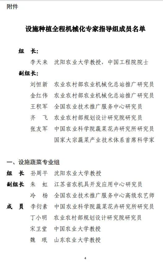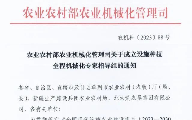 2023年9月,農業農村部農業機械化管理司成立設施種植全程機械化專家指導組,更好地貫徹落實《全國現代設施農業建設規劃 (2023-2030年)》(農計財發[2023]6號)、《農業農村部關于發展現代設施農業的指導意見》(農計財發[2023]10 號 )《農業農村部關于加快推進設施種植機械化發展的意見》(農機發 [2020]3號 ),更好地發揮行業專家在決策咨詢、技術指導、培訓交流驗收考核等方面的支撐服務作用,推動設施種植全程機械化高質量發展。