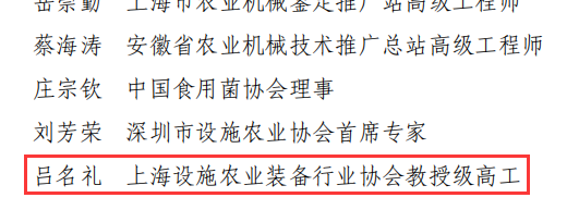 經上海設施農業裝備行業協會推薦,華維董事長呂名禮入選設施特色作物種植專業組。