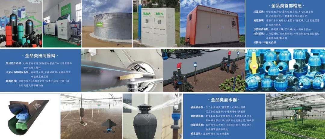 擁有過濾系統(tǒng)、施肥系統(tǒng)、水肥制蓄裝置、智能控制系統(tǒng)、喜耕田一體化云首部等首部樞紐,PE及PVC管材管件、電磁閥、輔助管件等田間管網,滴灌、微噴、噴灌等全品類灌水器,農抬頭數字農業(yè)云平臺。成套產品,連接完美兼容,不需東拼西湊、售后服務沒有推諉扯皮。