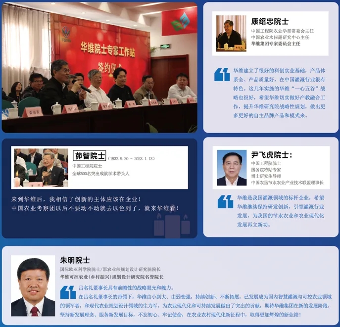 華維集團多次獲得茆智院士、康紹忠院士、尹飛虎院士、朱明院士等知名院士、專家及各級政府領導的點贊,二十三年品牌知名度大,美譽度高。
