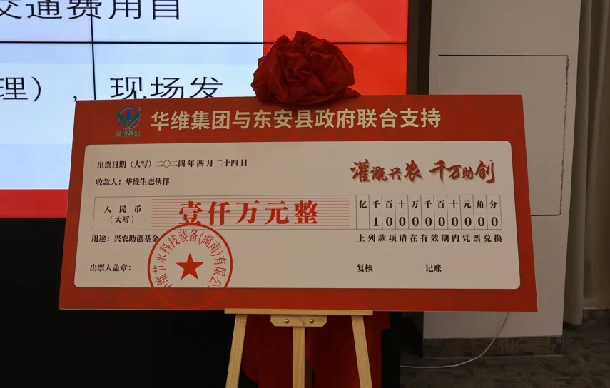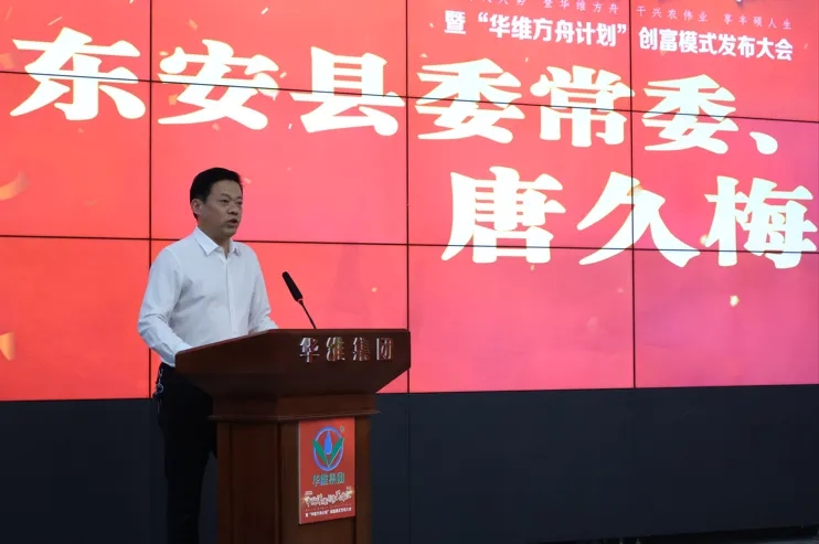 東安縣委常委、副縣長唐久梅致詞,并與華維集團共同揭幕發布“灌溉興農·千萬助創”基金