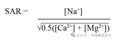 4.鈉之所以受到關注,是因為它會影響土壤結構。持續使用鈉含量超過鈣和鎂的灌溉水會導致土壤結構非常緊密,水滲透不良、通氣不良以及表面板結化。這種土壤硬化限制了根系生長。為了評估鈉導致土壤硬化的可能性,可以使用一個方程來預測鈉危害或鈉吸附比 (SAR):