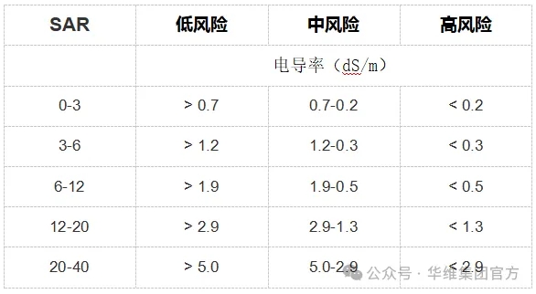 在下表中,EC 和 SAR 的分析用于評估不同土壤類型的風險,并作為一般指南。以下是如何使用表 3 的示例:如果水分析表明 SAR 等于 4,EC 為 1.6 dS/m,則從 SAR 列轉到 3-6 范圍,然后轉到顯示以下內容的列> 1.2,處于低風險欄,意味著低鈉危害。