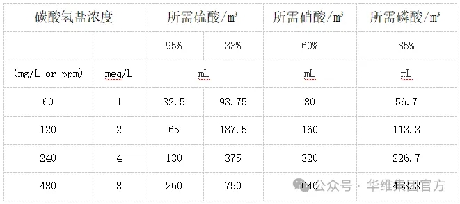 5.在藍莓生產中,灌溉用水會對土壤 pH 值產生巨大影響。大多數種植者會使用硫酸、硝酸、磷酸等酸將灌溉水的 pH 值降低至 5.5。用酸調節pH的做法減少了石灰殘留物,因為硫酸與石灰反應形成二氧化碳和硫酸鈣(石膏)。此外,灌溉水的酸化形成鎂和鈉的硫酸鹽。硫酸鹽更易溶解,并且不太可能在藍莓果面上形成殘留物(如噴灌)或堵塞微灌溉系統。下表中顯示了中和灌溉水中的碳酸氫鹽需要多少硫酸??梢允褂闷渌?;使用供應商提供的產品信息,根據酸強度調整比例。使用在不同 pH 水平下pH試紙可以充分監測灌溉水。1meq=60ppm