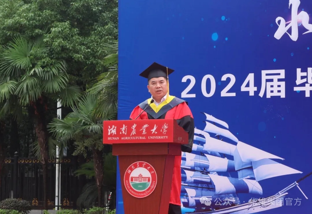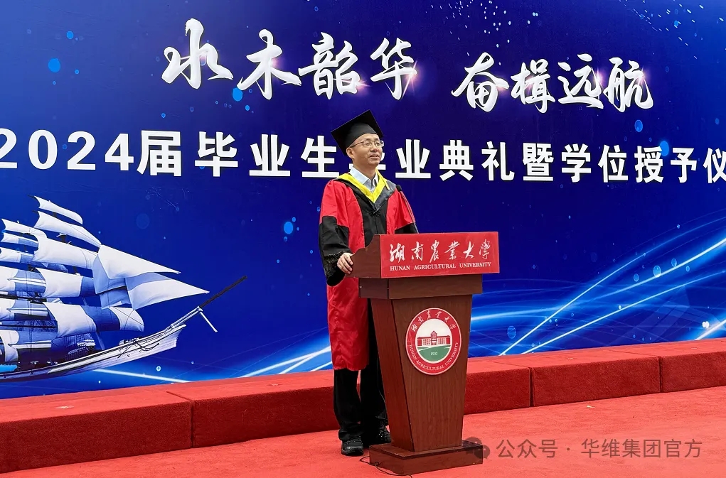 2024年6月11日,作為湖南農業大學客座教授,華維董事長呂名禮教高應邀出席湖南農業大學水利與土木工程學院(下簡稱水院)畢業典禮并寄語學子(詳見下文)。