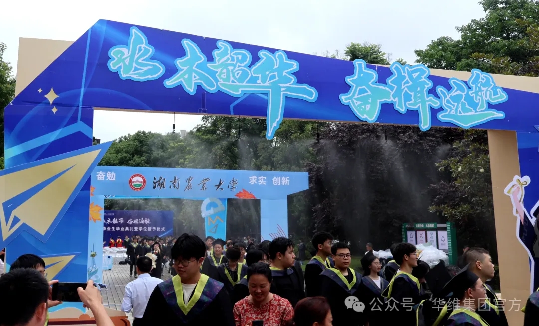 此次畢業典禮設置了三道門,門上有華維提供的“水肥一體化倒掛微噴系統(霧化效果,見上圖)”,這是水院和華維為學子們精心設計的“水門洗禮”儀式。