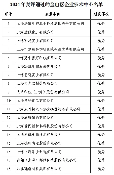 1. 2024年復(fù)評(píng)通過(guò)的金山區(qū)企業(yè)技術(shù)中心名單