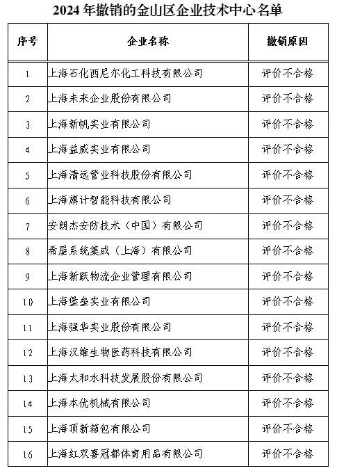 2. 2024年撤銷(xiāo)的金山區(qū)企業(yè)技術(shù)中心名單