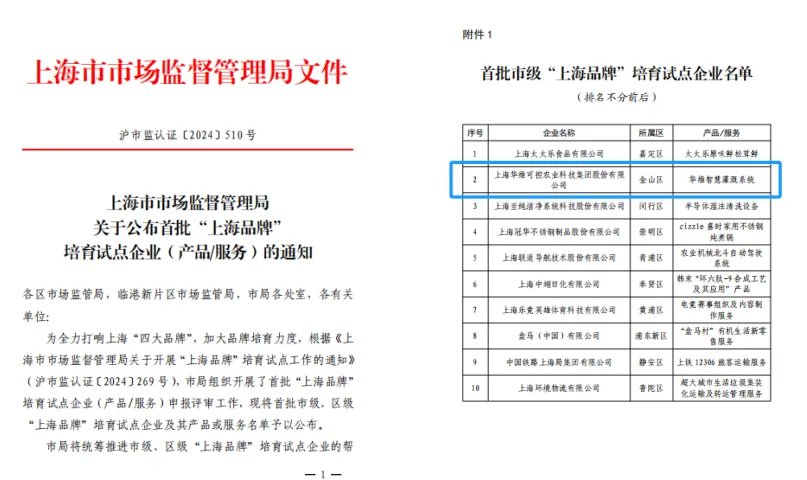 2025年3月20日,上海市金山區市場監督管理局副局長陸永妹帶隊到訪華維集團,就農業科技創新、品牌建設及標準化發展等方面進行實地調研。