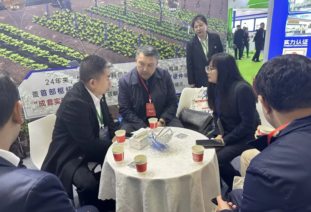 中國(guó)工程院康紹忠院士、尹飛虎院士視察華維展臺(tái),點(diǎn)贊華維“智能控制、過濾系統(tǒng)、施肥系統(tǒng)、管材管件、閥門、滴灌、微噴、噴灌”等成套智慧灌溉產(chǎn)品展示,及“莓悅云智慧藍(lán)莓專用施肥機(jī)、1829壓力補(bǔ)償?shù)晤^”等新產(chǎn)品。華維全系列智慧灌溉產(chǎn)品吸引了國(guó)內(nèi)外客戶洽談交流。