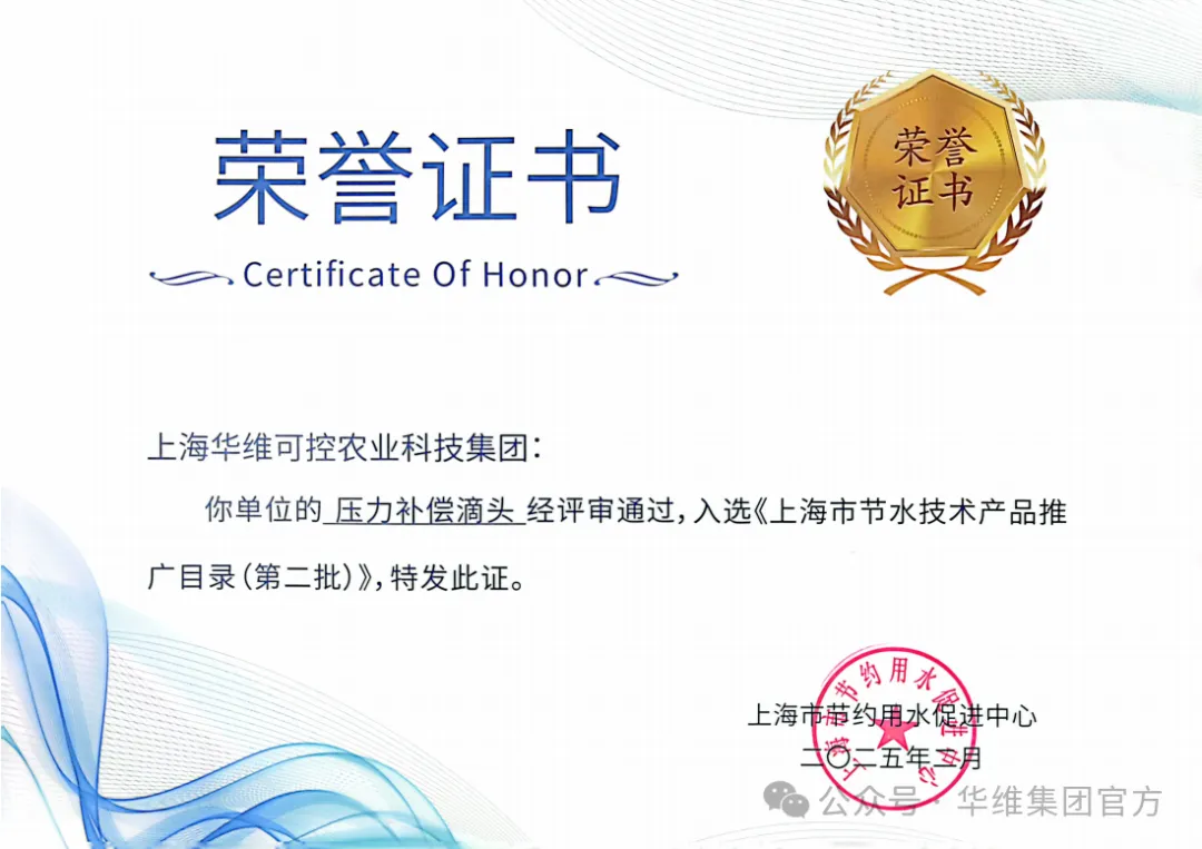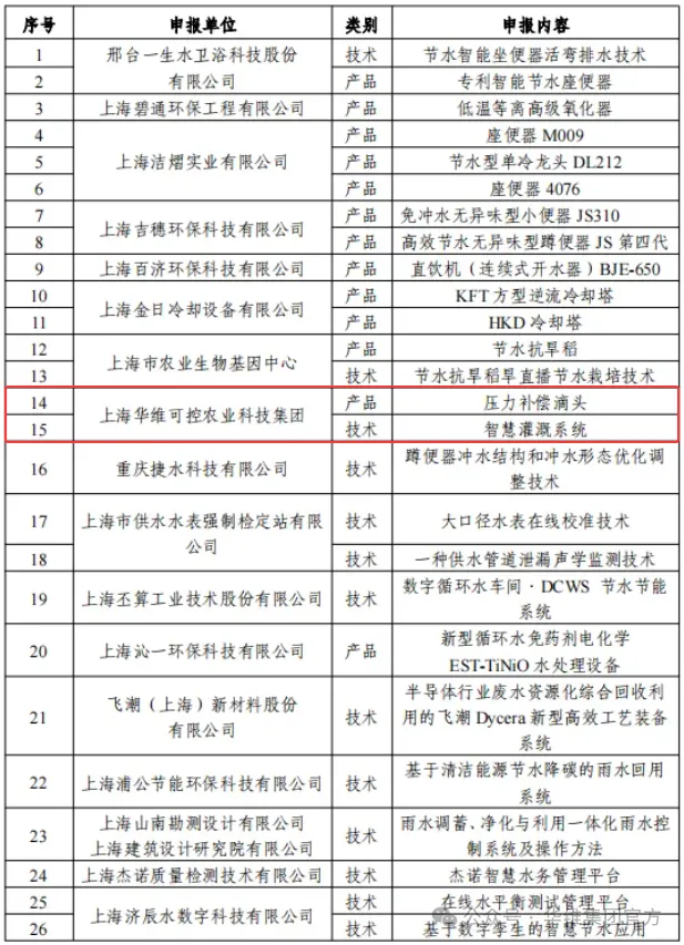 為貫徹落實(shí)《國(guó)家節(jié)水行動(dòng)方案》目標(biāo)任務(wù),促進(jìn)節(jié)水技術(shù)產(chǎn)品推廣應(yīng)用,上海市供水管理事務(wù)中心(上海市節(jié)約用水促進(jìn)中心)、上海市能效中心(上海市產(chǎn)業(yè)綠色發(fā)展促進(jìn)中心)組織開(kāi)展了《上海市節(jié)水技術(shù)產(chǎn)品推廣目錄(第二批)》的征集和評(píng)審工作,華維智慧灌溉系統(tǒng)和壓力補(bǔ)償?shù)晤^等節(jié)水技術(shù)產(chǎn)品通過(guò)了評(píng)審,入選《上海市節(jié)水技術(shù)產(chǎn)品推廣目錄(第二批)》名單。