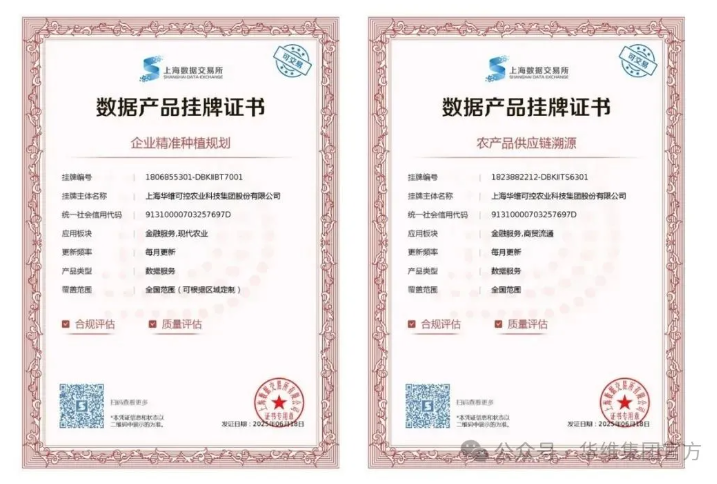 在數據資產化趨勢下,華維集團正式邁向數據要素市場,率先推動數據產品合規確權工作,成為數字賦能和數字驅動的智慧農業服務商,助力推動農業數字化和價值化轉型。數據產品開發及完成掛牌,不僅是數據驅動下的建模工作,更是產業理解、算法創新、產品設計、服務運維、合規監管等多維度協同下的綜合創新成果,打造了新時期“數據要素×現代農業”的重要實踐樣板,推動引領了農業數智化發展、數據資產化轉型、行業標準制定等關鍵方向。