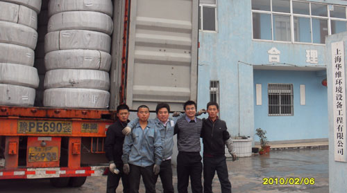 華維員工裝載集裝箱(包裝整齊的PE管等)
