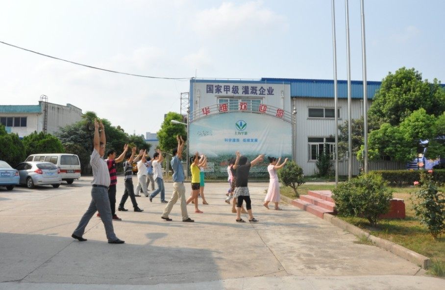 “現(xiàn)在開始做第八套廣播體操,原地踏步走。。。”,從2011年的8月1日開始,在上海華維節(jié)水灌溉有限公司的辦公樓前面出現(xiàn)了道亮麗的風(fēng)景線。每天早上8:40,伴隨著輕快的節(jié)奏,公司員工排著整齊的隊(duì)伍認(rèn)真地做起了廣播體操。