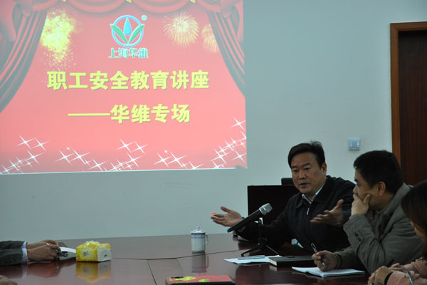 2013年11月25日,華維毅然作出了全公司停工停產(chǎn)的決定,特地邀請奉賢區(qū)南橋鎮(zhèn)安全監(jiān)察大隊(duì)沈建國大隊(duì)長為員工開展職工安全教育講座,提高員工安全生產(chǎn)意識(shí),加強(qiáng)企業(yè)安全生產(chǎn)管理。