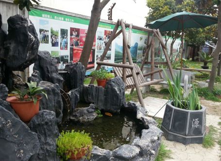 圖5為華維廠區內假山流水,旁設秋千,可供休憩