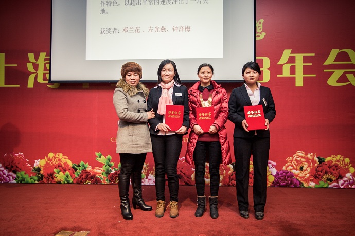 頒獎嘉賓與第四季度季度銷售競賽優勝者合影
