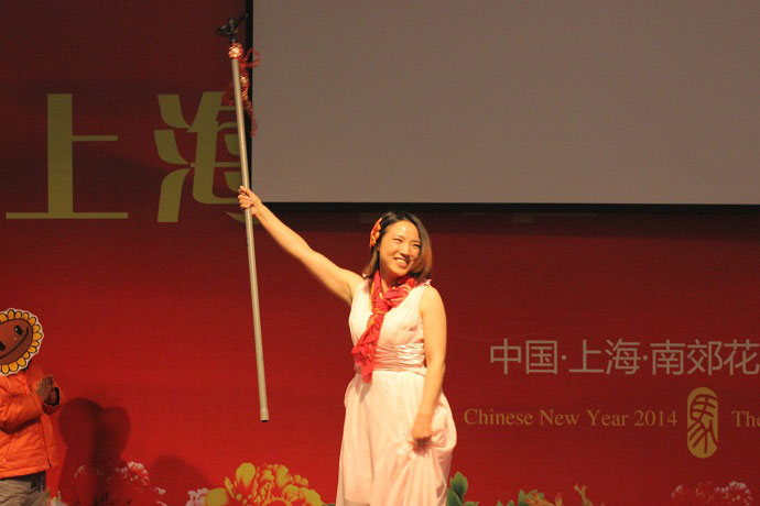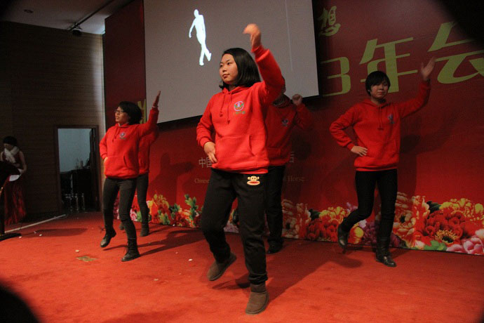 銷售部的MM們把健美操帶上舞臺,全場一起跳動起來