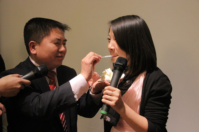 甜蜜升級,董事長呂名禮先生親手喂眾壽星蛋糕,讓愛再飛一會吧