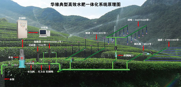 高效灌溉是將灌溉與施肥融為一體的新型精準(zhǔn)灌溉技術(shù)。即借助壓力系統(tǒng)(或地形自然落差),將可溶性固體或液體肥料,按照土壤養(yǎng)分含量、作物種類的需肥規(guī)律和特點,配兌成的肥液與灌溉水相溶后,通過可控的灌溉系統(tǒng)均勻適時適量按比例供給作物。