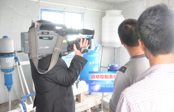 華維工程部技術負責人詳細介紹了該示范基地配備的滴灌、微噴等水肥藥一體化系統,及首部和自動化智能控制系統,并進行了現場的工作狀態演示。按個按鈕,就像輕輕按下手機按鍵一樣,溫室大棚內就“下起了雨”?;刎撠熑嗽诮邮芷謻|電視臺記者采訪時表示,自從安裝了華維高效水肥一體化系統后,想下雨就下雨,想什么時候下雨就什么時候下雨,基地灌溉再也不用愁了。
