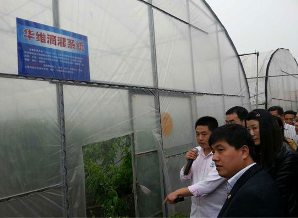 【華維 訊】2014年4月17日,2014上海市區域特色農業生產基地推進會在上海南匯成功召開,全市各區縣農業相關部門主管領導及大型種植基地負責人等近百人,參觀考察了華維負責設計和實施的水蜜桃高效水肥一體化示范基地,隨后舉行了專場座談會,上海浦東電視臺全程拍攝了此次推進會。