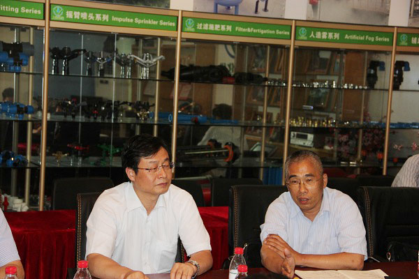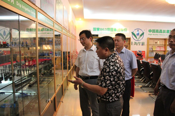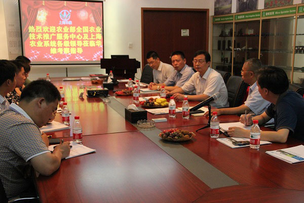 【華維訊】2014年7月6日,農業部全國農業技術推廣服務中心副主任謝建華、上海市農業技術推廣服務中心主任朱建華、副主任朱恩等農業系統相關領導,顧不上周末休息和酷暑,專程考察了上海市水肥一體化行業相關龍頭企業和基地,下午在華維第三會議室就上海市水肥一體化發展情況等進行了深入的交流探討。